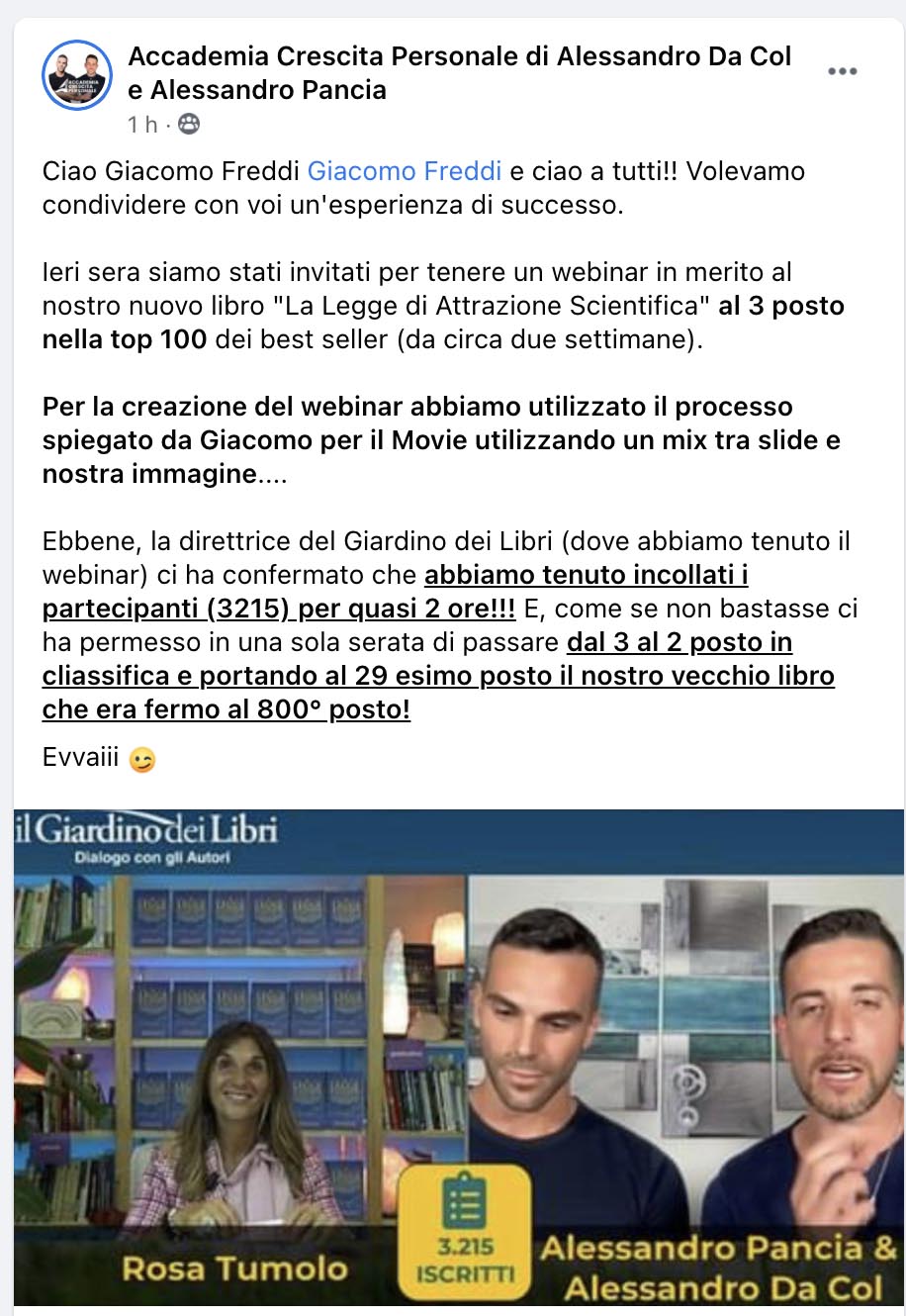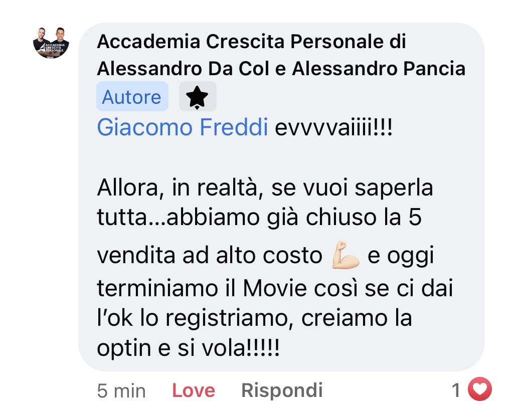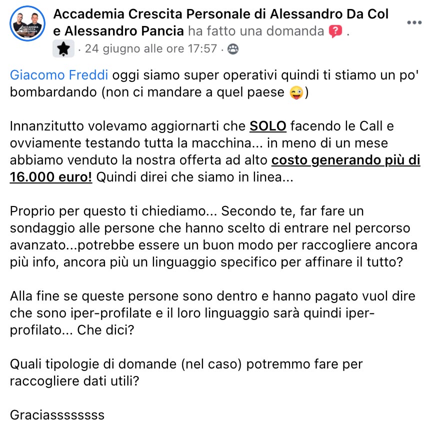 Poi abbiamo letto una email di Giacomo, in cui abbiamo trovato un amico, in cui ci siamo rispecchiati e ritrovati al 100%, in cui abbiamo capito che cosa avremmo dovuto fare per svoltare il nostro business.