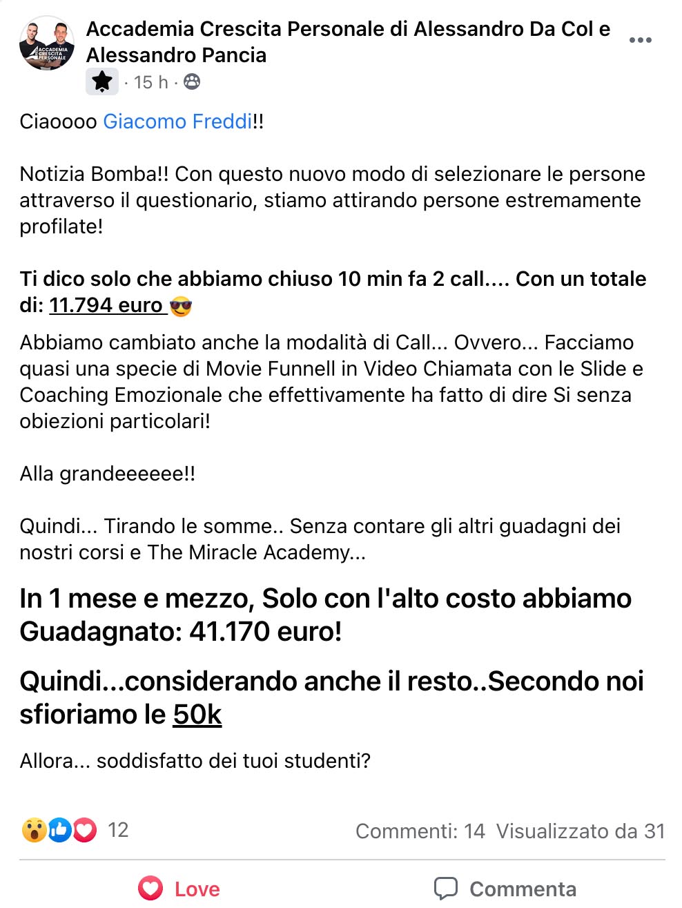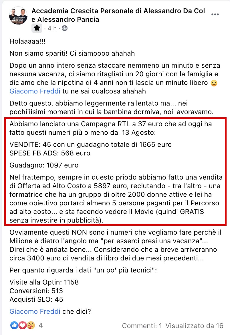 Mentre studiavamo tutto quello che Giacomo insegna, abbiamo applicato tutto alla lettera, il più velocemente possibile, e dopo soli 15 giorni, ci siamo ripagati totalmente il costo dell'IMPACT Coaching del Marketing Programmatico.