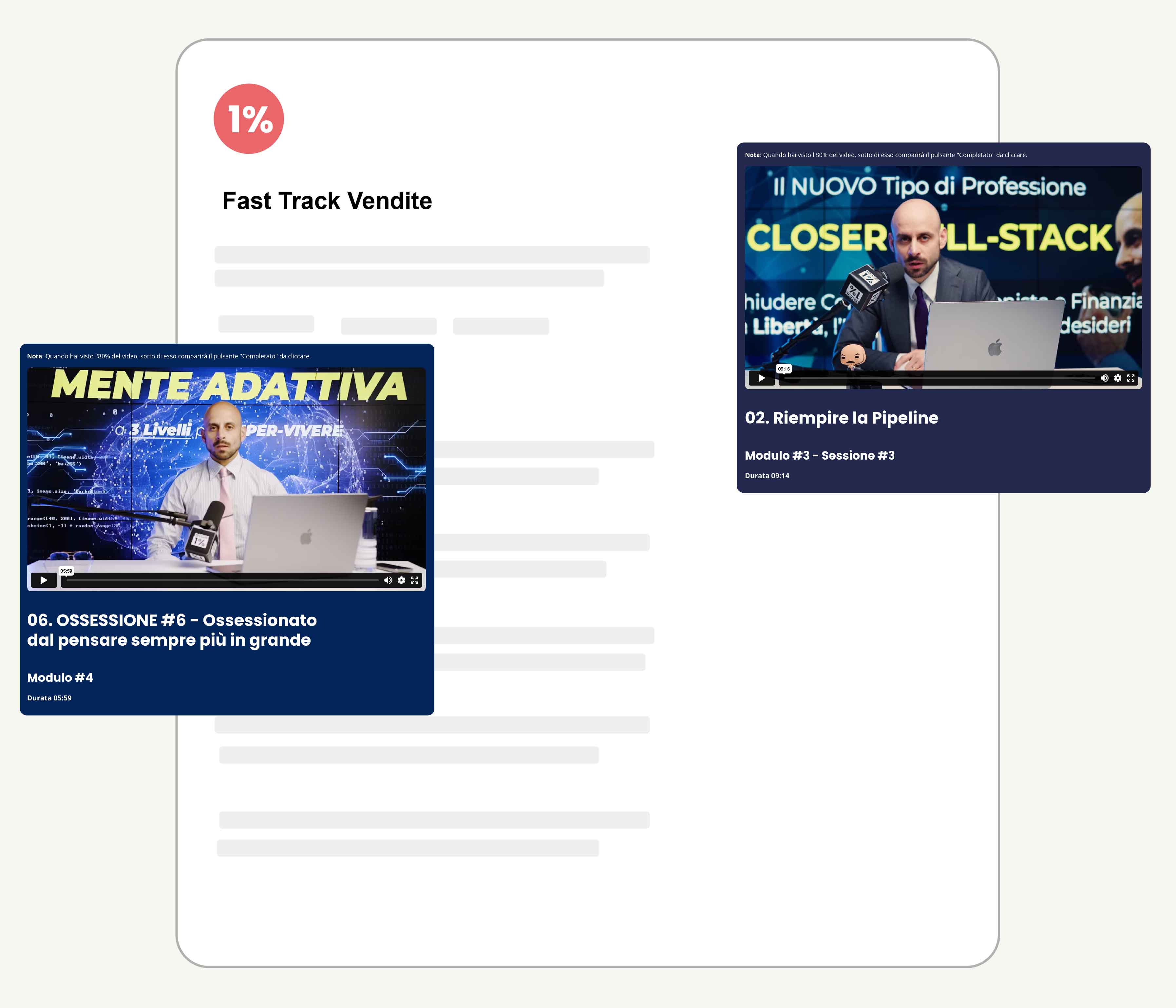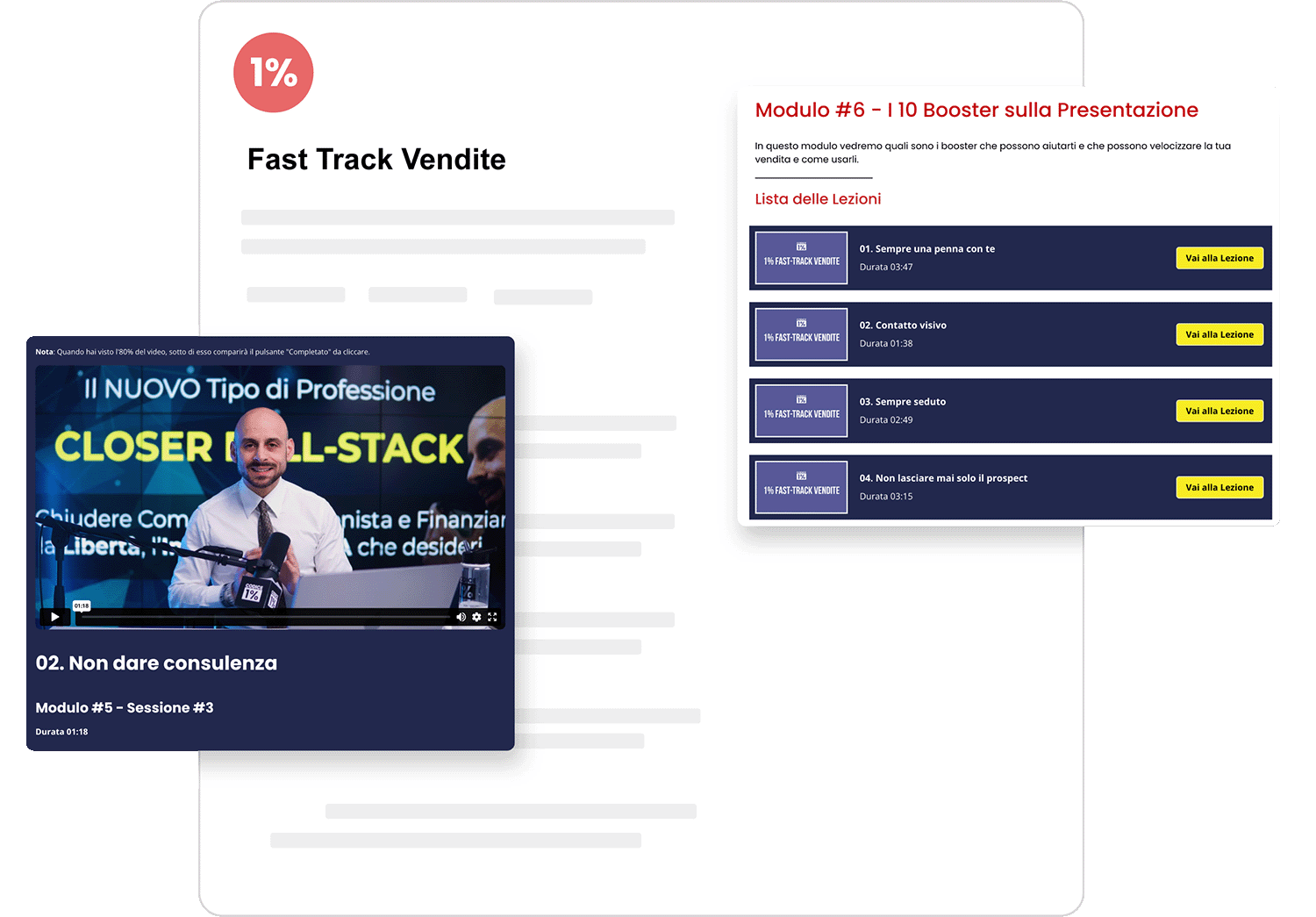 Il tuo progresso sarà monitorato costantemente e riceverai feedback settimanali che ti permetteranno di correggere la rotta, migliorare le tue tecniche di vendita in tempo reale e garantire il raggiungimento degli obiettivi.