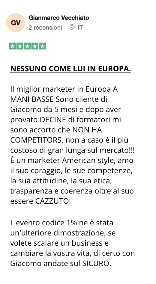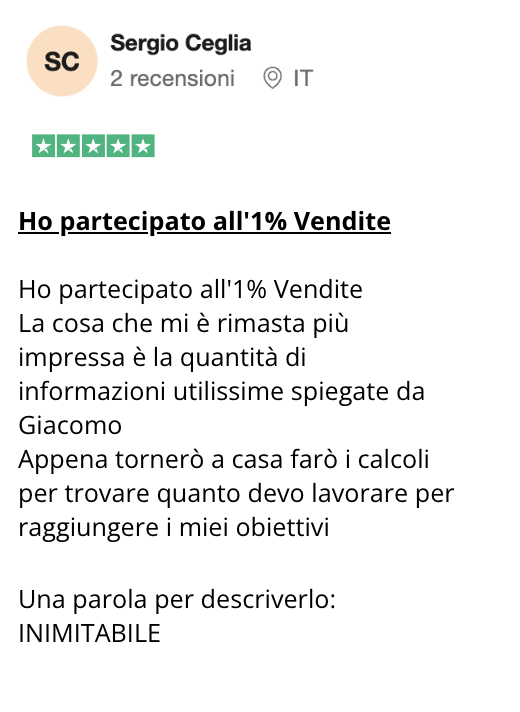 NOTA: E' la stessa identica strategia con cui io e il mio team abbiamo Acquisito + 21.457 Clienti, Lanciato + 35 Prodotti e Servizi (Differenti) passando da 1.5 MLN a +10 MLN di Contratti Chiusi l'Anno.
