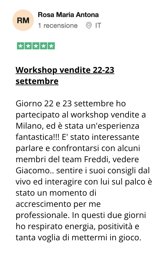 Ho venduto 20 servizi per un totale di 200.000$ e prevenduto in italia 10 servizi per un totale di 250.000€