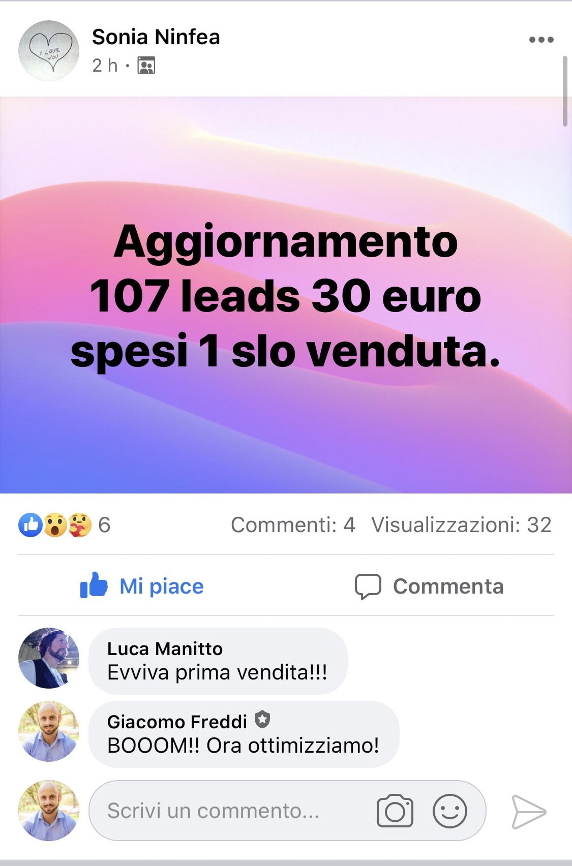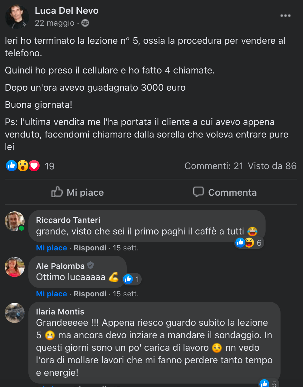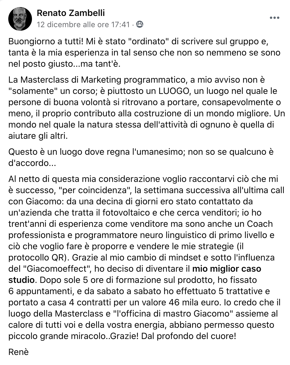 Poi ho incontrato Giacomo in un'inserzione facebook, e ho capito che poteva assolutamente fare per me. Mentre studiavo tutto quello che Giacomo insegna nella ricerca di mercato, abbiamo applicato tutto alla lettera, e grazie a queste strategie ho venduto 3 contratti dei miei impianti fotovoltaici e fatto tanti preventivi.