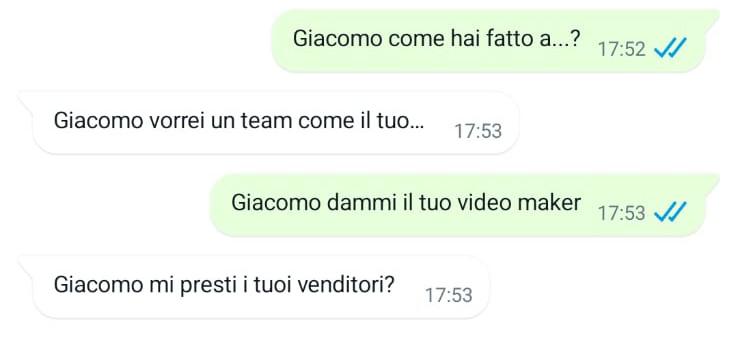 Sia da chi mi segue online, che dai miei clienti della Masterclass del Marketing Programmato, quelli del percorso Impact o del più avanzato 1%360...